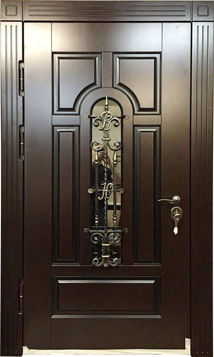Красивый внешний вид немаловажное, но не самое главное преимущество металлических дверей с элементами ковки. Такие двери еще и очень надежны. Они изготавливаются из холоднокатаной стали толщиной 1,4-2 мм, отделываются массивом, корабельной фанерой, натуральным шпоном или МДФ-панелями, покрытыми виноритом. Установив на нее замки 3 или 4 класса взломостойкости, вы получите дверь, вскрыть которую с помощью грубой силы практически невозможно.